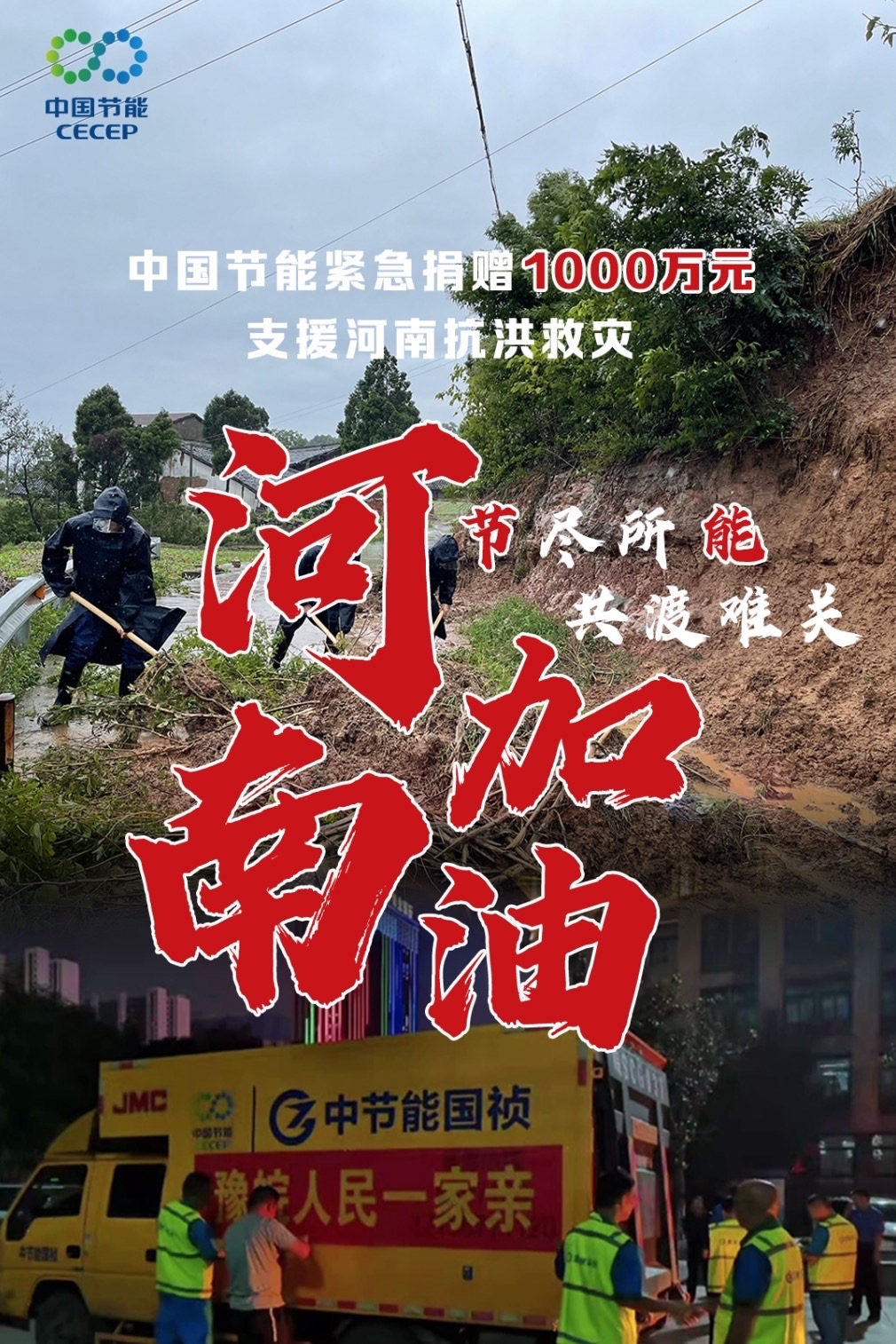 7月22日,为支援河南防汛救灾,中国节能环保集团有限公司向河南省捐款1000万元。