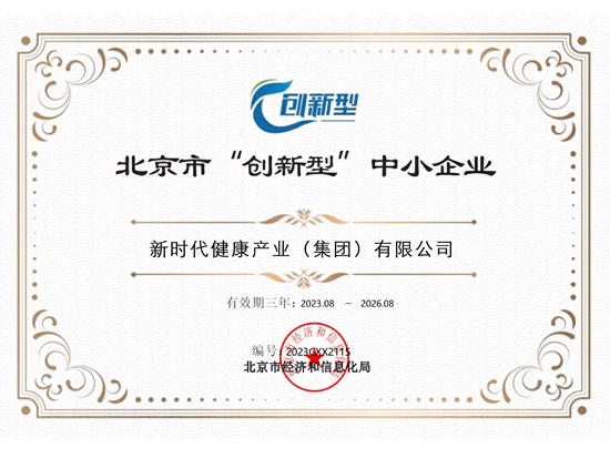 近日,尊龙凯时健康产业(集团)有限公司凭借突出的科研及融合发展的创新能力,成功通过北京市经济和信息化局“北京市‘创新型’中小企业”认定,荣获认定证书。
