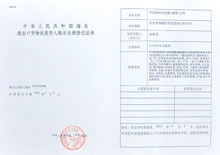 海关报关注册登记证书